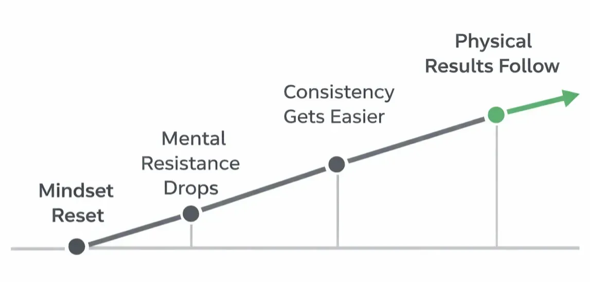 That’s exactly why this works. This is the mindset foundation — no workouts, no meal prep required. You can implement physical changes when you’re ready, with the right mental framework finally in place.